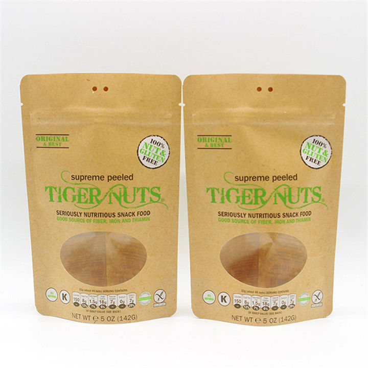Acepta papel Kraft amarillo personalizado biodegradable a prueba de olor Stand Up Pouch Almacenamiento de alimentos Bolsas de embalaje